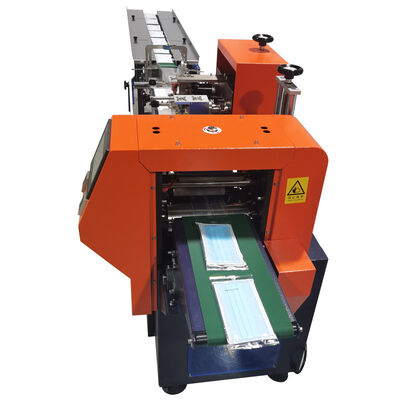 機械は自動的にマスクを袋に入れ、自動的に袋を切り、そして自動的に完成品を出力する。